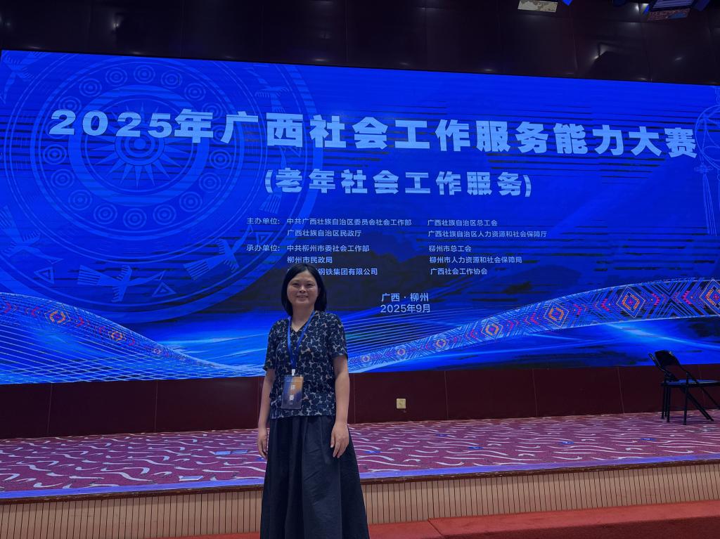受广西壮族自治区党委社会工作部邀请,2025年9月11日至13日,我院社会工作专业教师前往柳州市担任首届广西社会工作服务能力大赛评委。广西社会工作服务能力大赛是广西壮族自治区党委社会工作部、自治区总工会、自治区民政厅、自治区人力资源社会保障厅等四部门联合主办的赛事。此次比赛分为老年社会工作、儿童社会工作、新就业群体社会工作三个赛道。谢敏老师担任老年社会工作赛道评委,针对参赛队伍的项目设计书、项目展示和情境演示进行了专业评价,与众多工作人员一起助力大赛圆满完成。