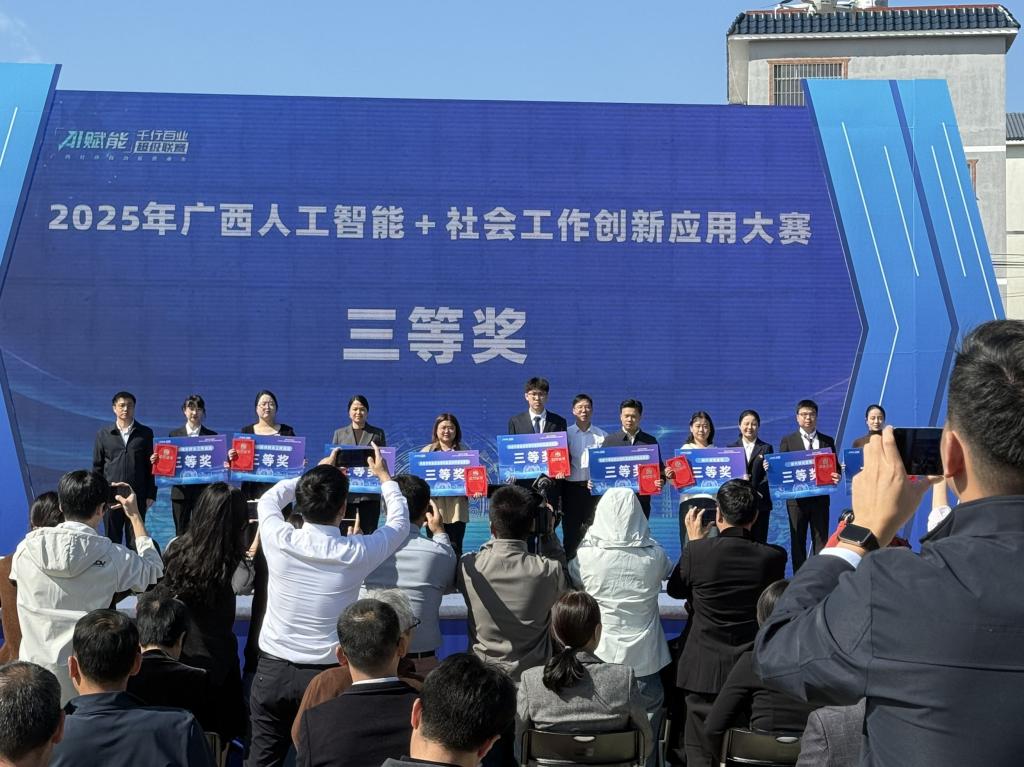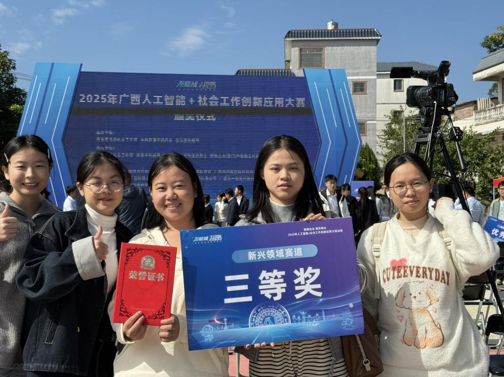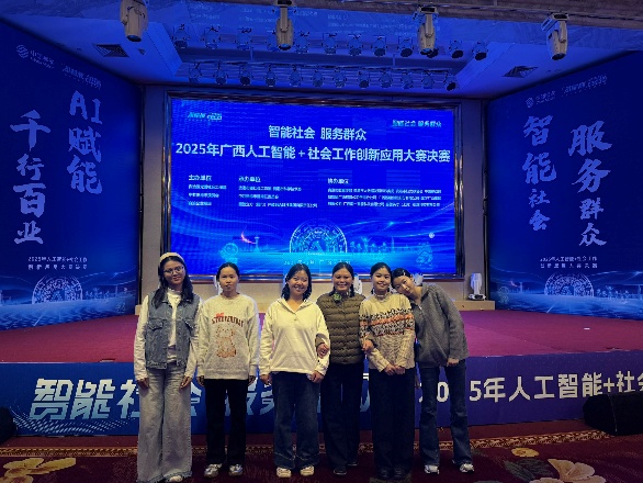 2025年广西“AI+社会工作服务”大赛由广西壮族自治区党委社会工作部、中共贵港市委员会、自治区数据局联合举办,于10月10日正式启动。该赛事面向高校师生、科研人员、企业团队、社会组织及对“AI+社会工作”有兴趣的个人或团队,旨在推动人工智能与社会工作深度融合,提升社会治理智能化水平。此次比赛共分为三个赛道,分别为新兴领域赛道、党建引领基层治理和基层政权建设赛道、凝聚服务群众工作赛道。共980支队伍报名参加比赛,覆盖全区各市县及多所高校。由我校社会工作专业师生组成的参赛团队(指导老师:谢敏,参赛队员:伍咏薇、覃小燕、李芳宇、黄煦春、郑焕宁)在此次比赛中从980支参赛队伍中脱颖而出,顺利进入前30名,入选决赛队伍。并在2025年11月20-21日举办的决赛中荣获新兴领域赛道三等奖,成为18支获奖队伍之一。此次比赛,既充分彰显了我校社会工作专业人才培养质量,也是我校社会工作专业对广西“人工智能+”赋能千行百业战略的积极响应。在未来的专业建设中,社会工作专业将进一步依据自治区发展战略,围绕广西社会治理需要,不断优化人才培养,积极奉献于广西社会发展。