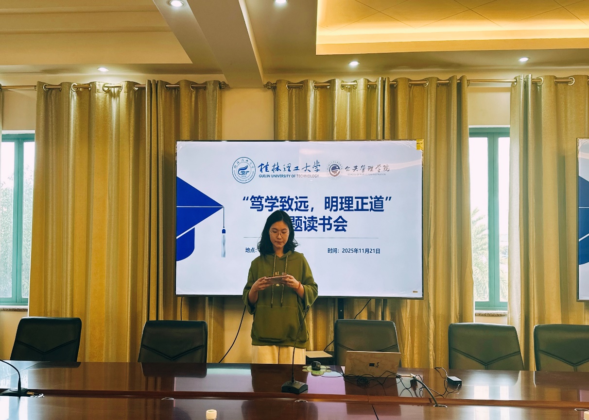 11月21日,我院在雁山校区07325教室举办第九次主题读书会。本次会议由张娅轩、周家辉、吴帅和赵涛伟担任宣讲人。郑会晓担任主持人,2024级、2025级全体研究生共同参与。