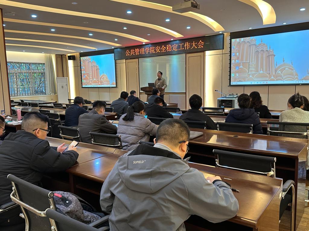 为进一步贯彻落实学校党委行政有关部署要求,研究部署近期学院安全稳定工作,2025年12月12日,我院在屏风7106教室召开了安全稳定工作会议。本次会议由学院党委书记陆平主持,全体教职工参加了会议。