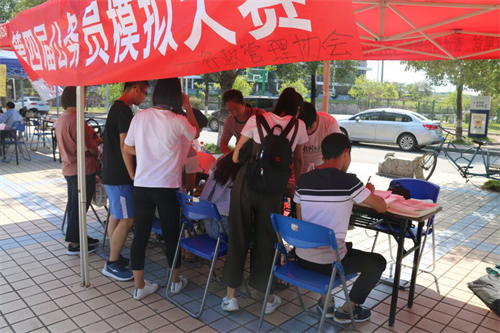 自今年9月末以来,公共管理与传媒学院行政管理协会就在为第四届公务员模拟考试大赛进行紧张的筹备工作,为了让活动更加丰富以及成功,公共管理与传媒学院团委学生会以及行政管理协会指导老师褚清华都对此次活动给予了很大支持。