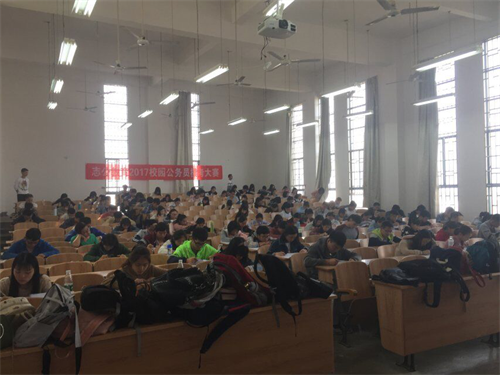 在经过一段时间的活动宣传过后,共有一百九十余名同学报名参加了本次公务员模拟考试大赛。在持续两天的设点宣传中,同学们积极了解活动内容并踊跃参与到答题有奖活动中,现场气氛一度火热,很多同学也都喜笑颜开地满载而归。本次大赛还为各位报名的同学们提供免费的专场讲座和考试培训,志公讲师认真地为同学们解答目前的公职发展前景以及公务员考试的备考方法。讲师为人谦和幽默,同学们受益良多。