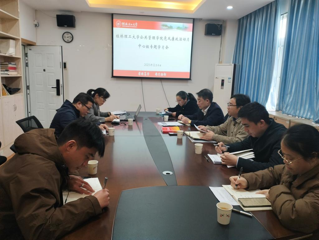 2025年12月4日下午,学院于屏风校区7705会议室召开党风廉政活动月中心组专题学习会,聚焦学习二十届四中全会精神与习近平总书记关于党风廉政建设重要论述。会议由学院党委书记陆平主持,学院党委委员、院长助理及各支部书记共同参与。